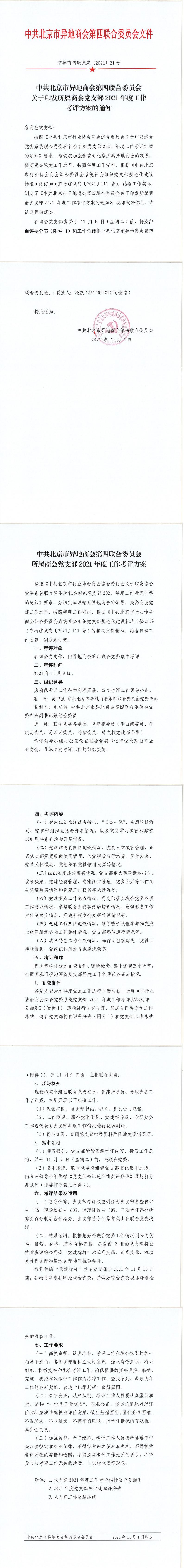 異地商會第四聯(lián)合黨委所屬商會黨支部2021年度工作工作考評方案的通知