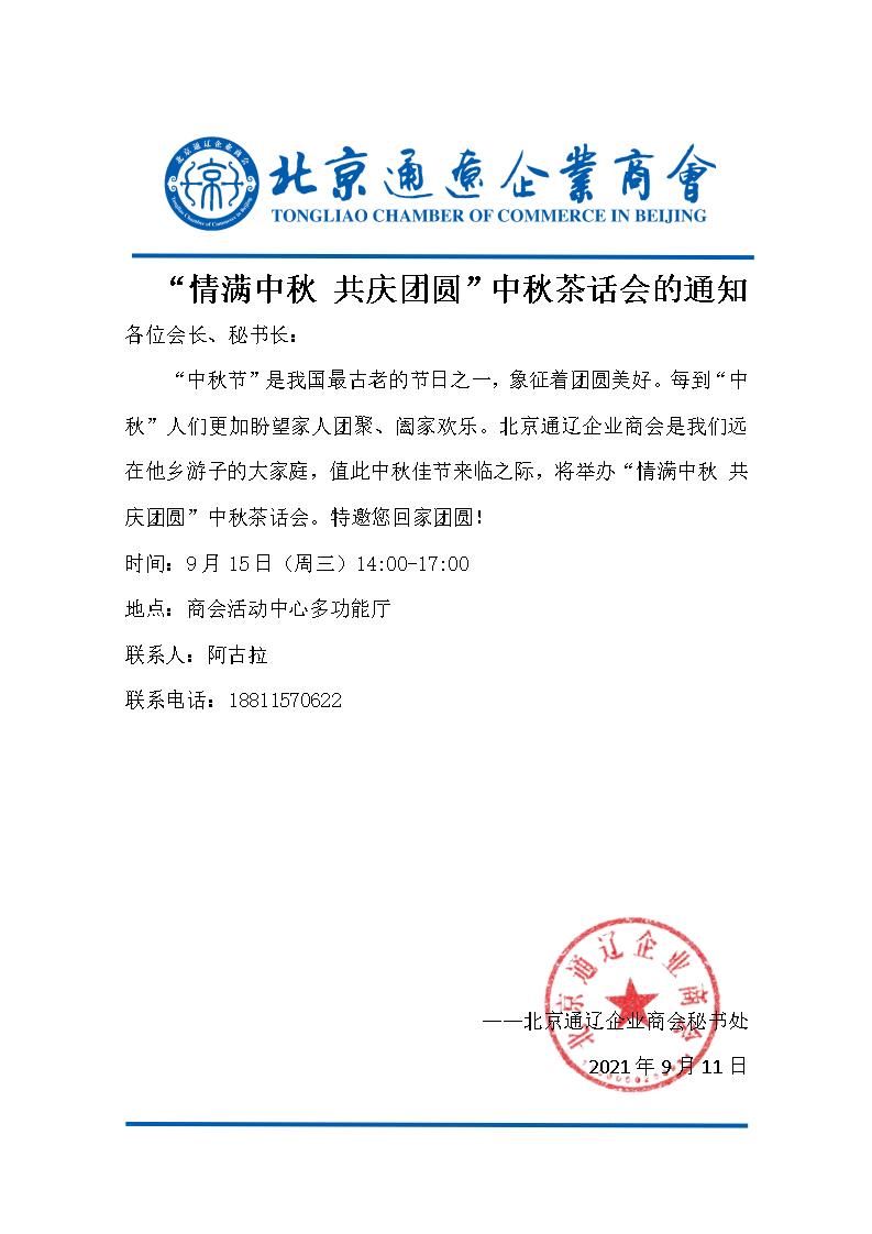 “情滿中秋 共慶團(tuán)圓”中秋茶話會(huì)的通知