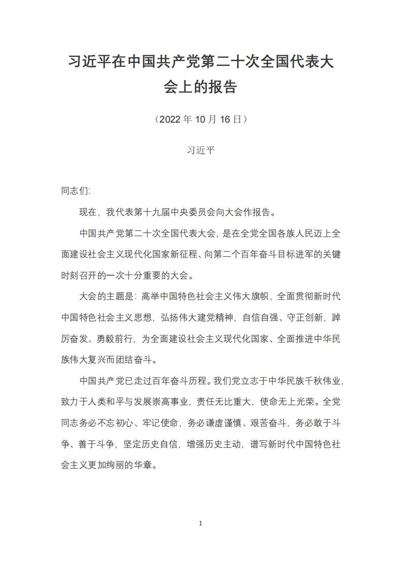 習(xí)近平在中國共產(chǎn)黨第二十次全國代表大會(huì)上的報(bào)告